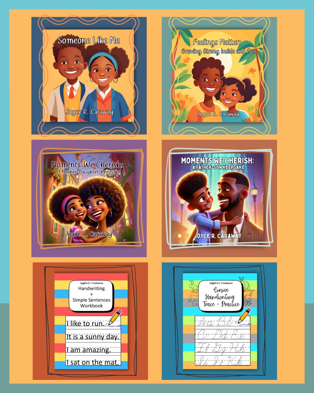 Joybird’s Treehouse is committed to developing reflective books and writing resources, designed to strengthen literacy skills while empowering African American children. Every page is crafted to increase fluency, spark imagination, and support the growth of confident, capable readers and writers.